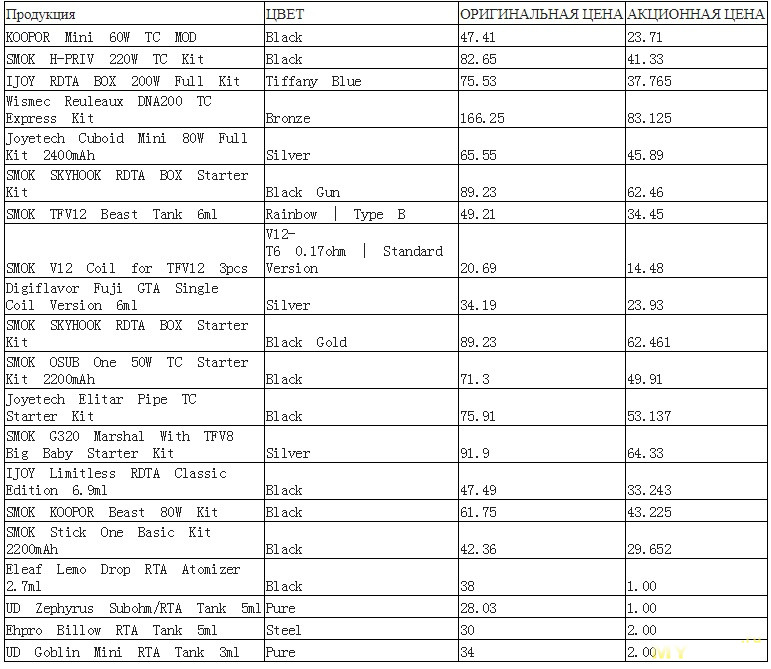 И отдельные скидки на товары из таблицы.
